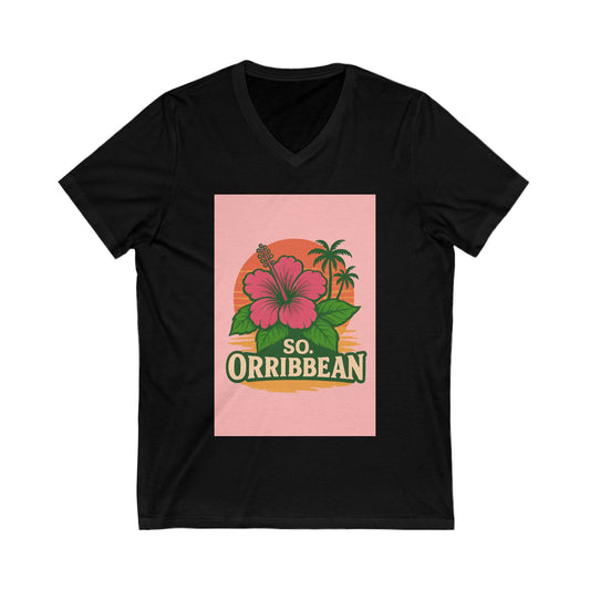 Tropical Floral V-Neck Tee - So Orribbean, Summer Shirt, Beachwear, Vacation Top, Gift for Him/Her