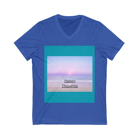 Happy Thoughts V-Neck Tee - Unisex Beach-Inspired Shirt